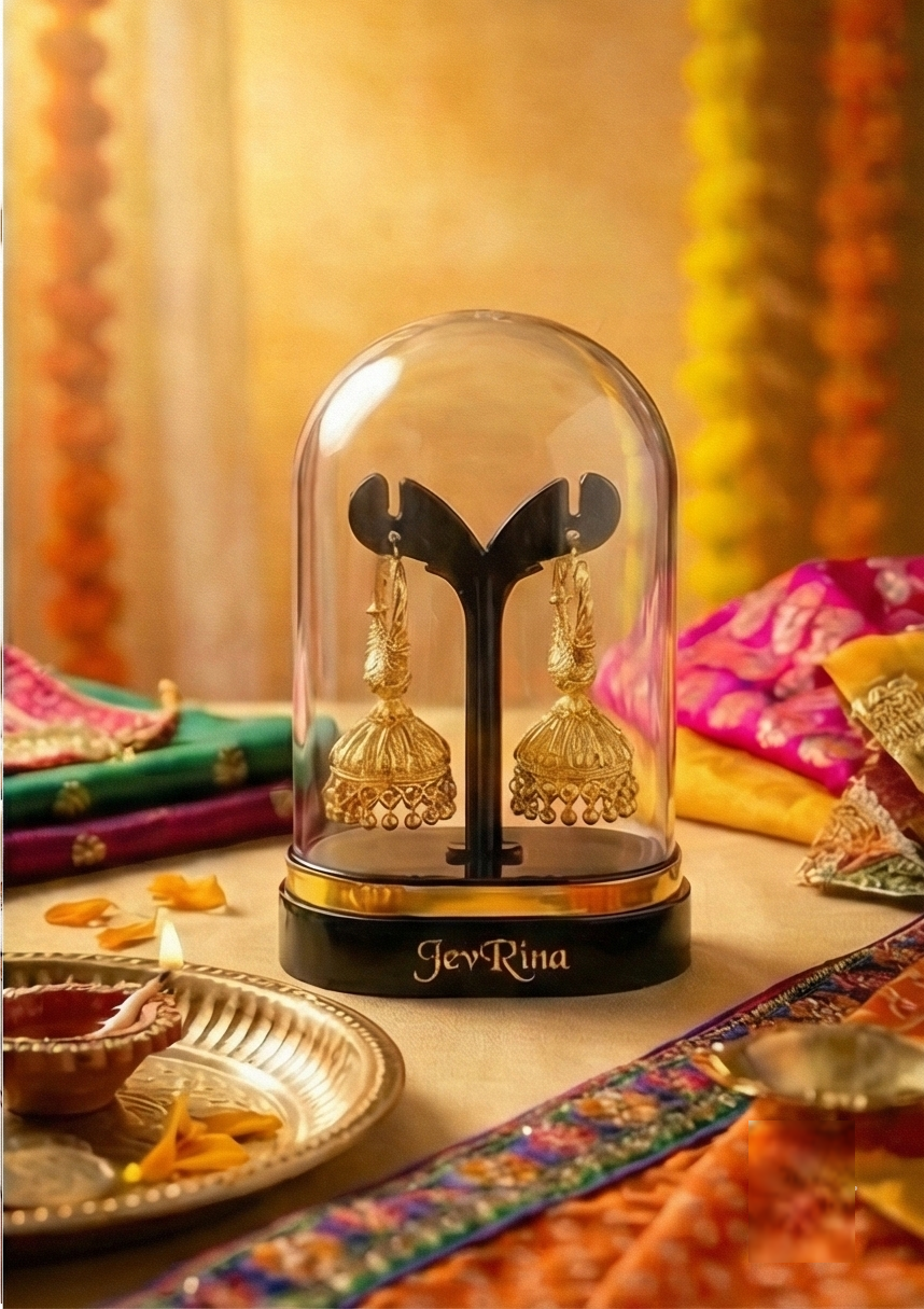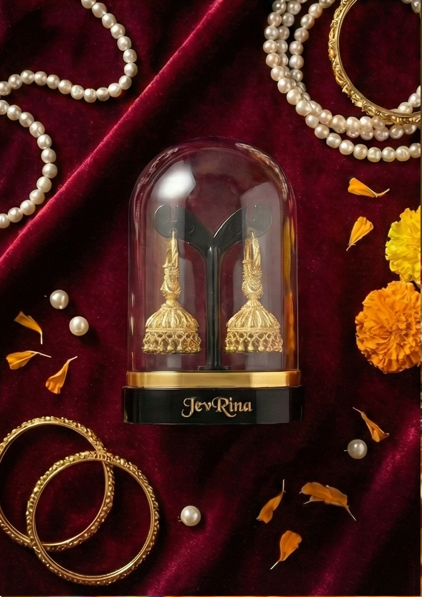 JevRina Rajwada Gold Look Artificial Jhumka Earrings are a perfect choice for gifting your girlfriend or wife. Designed with a royal rajwada-inspired look, these jhumkas offer the elegance of gold jewellery while being completely artificial and affordable.