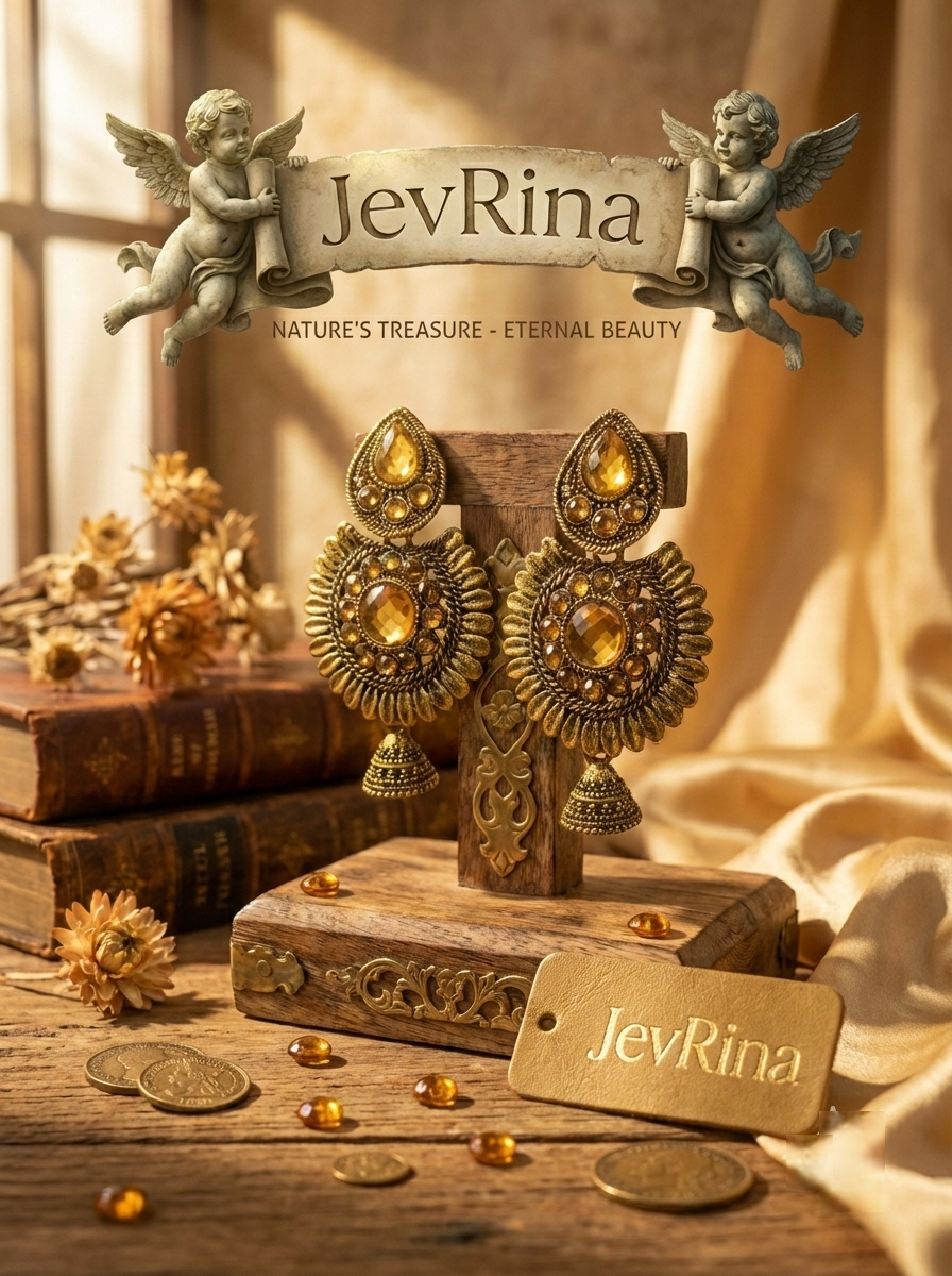 JevRina Royal Antique Gold Statement Earrings