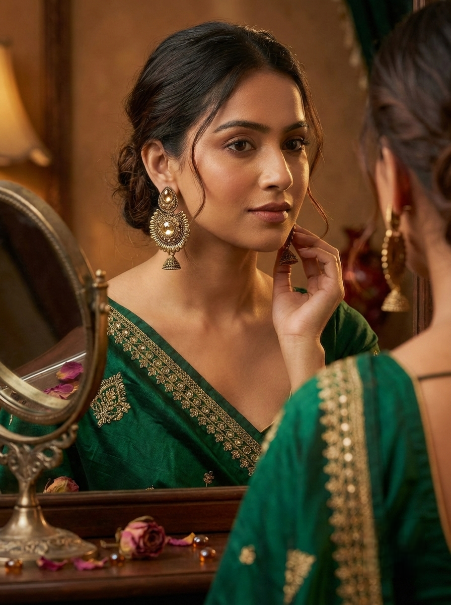 Whether you are styling a beautiful silk saree, a festive lehenga, or an elegant Anarkali suit, these JevRina earrings are guaranteed to make you stand out with sophistication and charm.