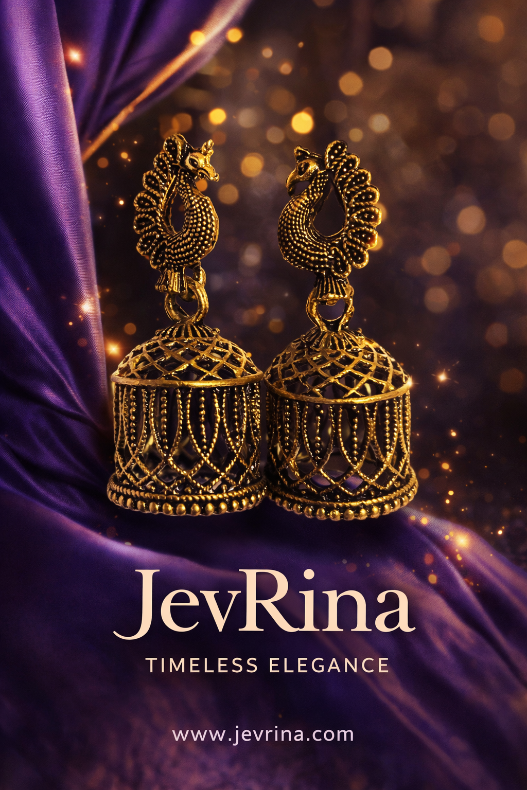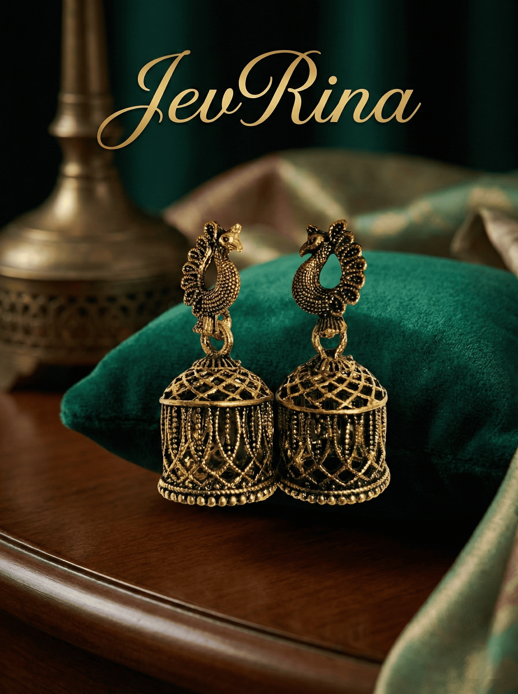 JevRina Traditional Antique Gold Peacock Jhumka Earrings